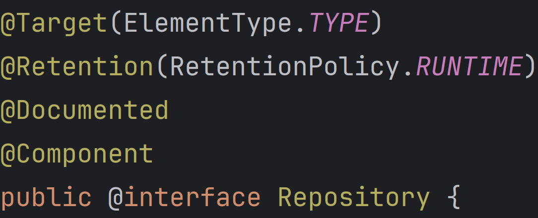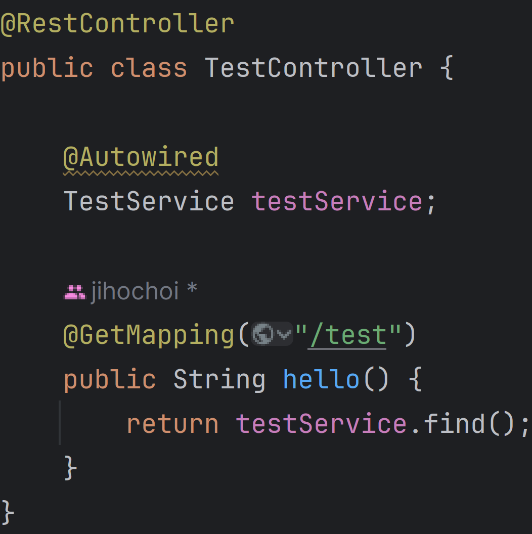 - TestService, TestRepository 클래스 위에 있는 @Service, @Repository 어노테이션은 @Component 어노테이션을 메타 어노테이션으로 가지고 있어서 컴포넌트 스캔에 의해 스프링 컨테이너에 빈으로 등록된다.