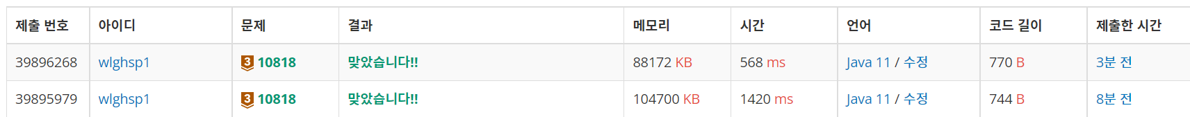 블로그 참고했던 예전 풀이 보아서 적었고, 배열이랑 정렬메서드를 사용 안해서 시간복잡도 상 효율적인 풀이이다.
