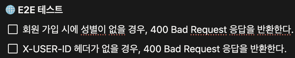 - E2E 테스트는 기존의 컨트롤러 API 테스트와 비슷한데 API 마다 @Nested 어노테이션과 함께 inner class 로 테스트를 작성하는 방식을 배울 수 있었습니다.